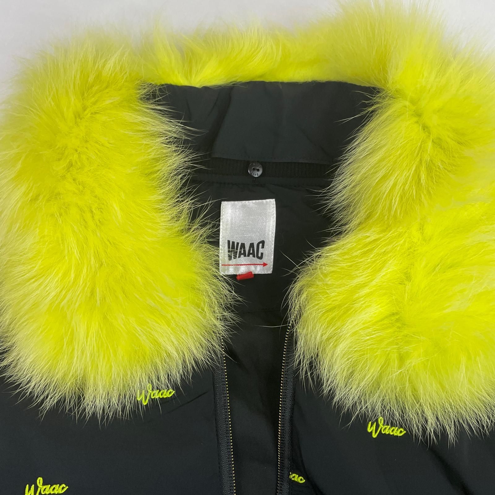 レディース ワック WAAC ブルゾン 2 M 黒×黄 ブラック×イエロー 丈短め ダウン フェザー 着脱 ファー襟