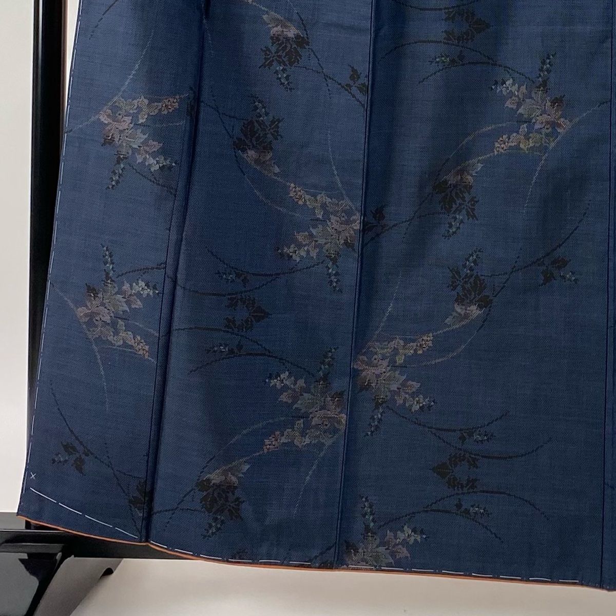 紬 身丈161 cm 裄丈63.5 S 袷 草花 紺色 正絹 秀品