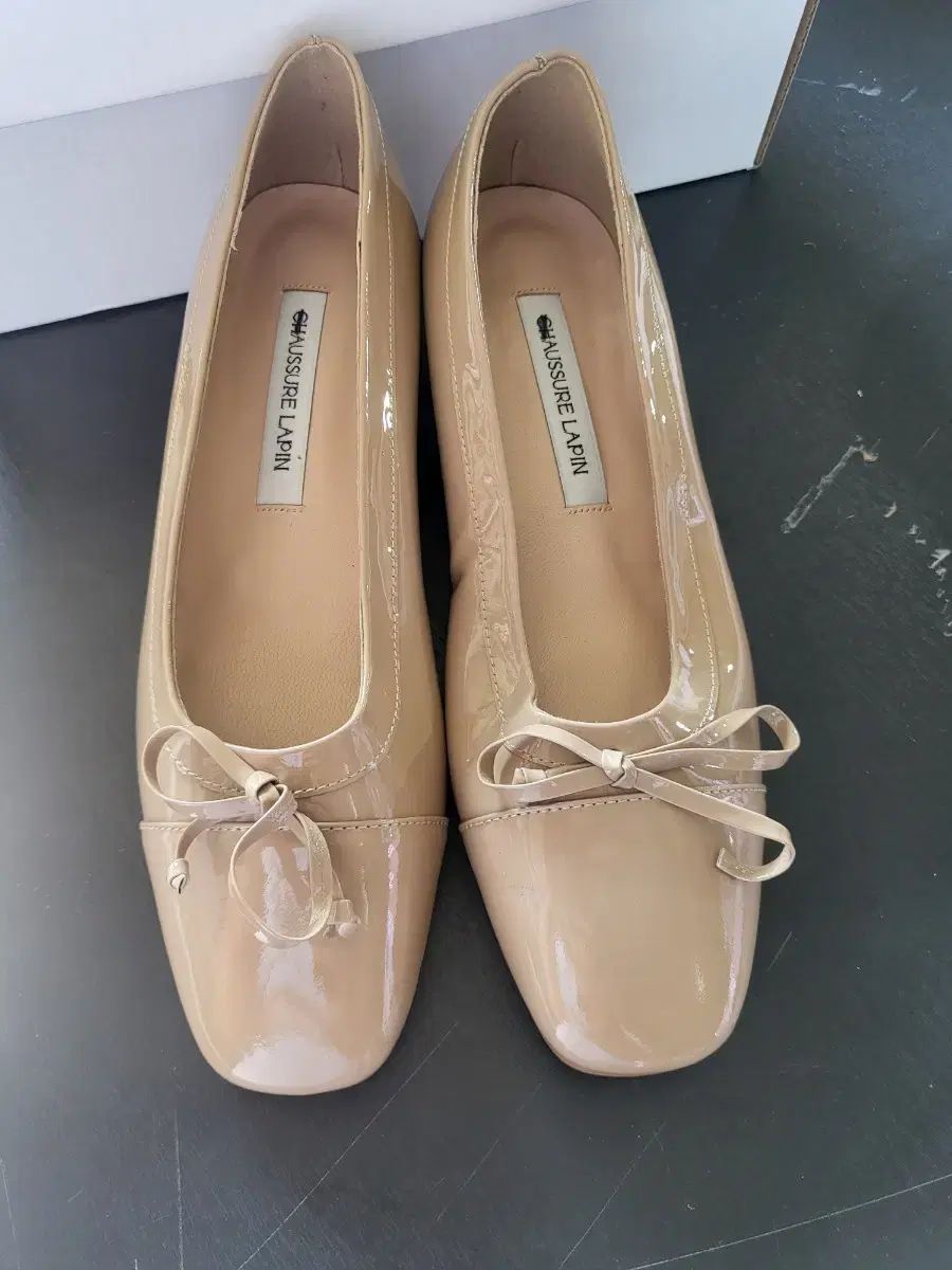ショーシュールラパンリボンエナメルフラットシューズです。ほのかなベージュトーンのエナメル素材が高級感をプラスします。上品なリボンのディテールはどんな装いにもぴったりです。他に質問がない場合は、すぐに安全な支払いを行ってください!