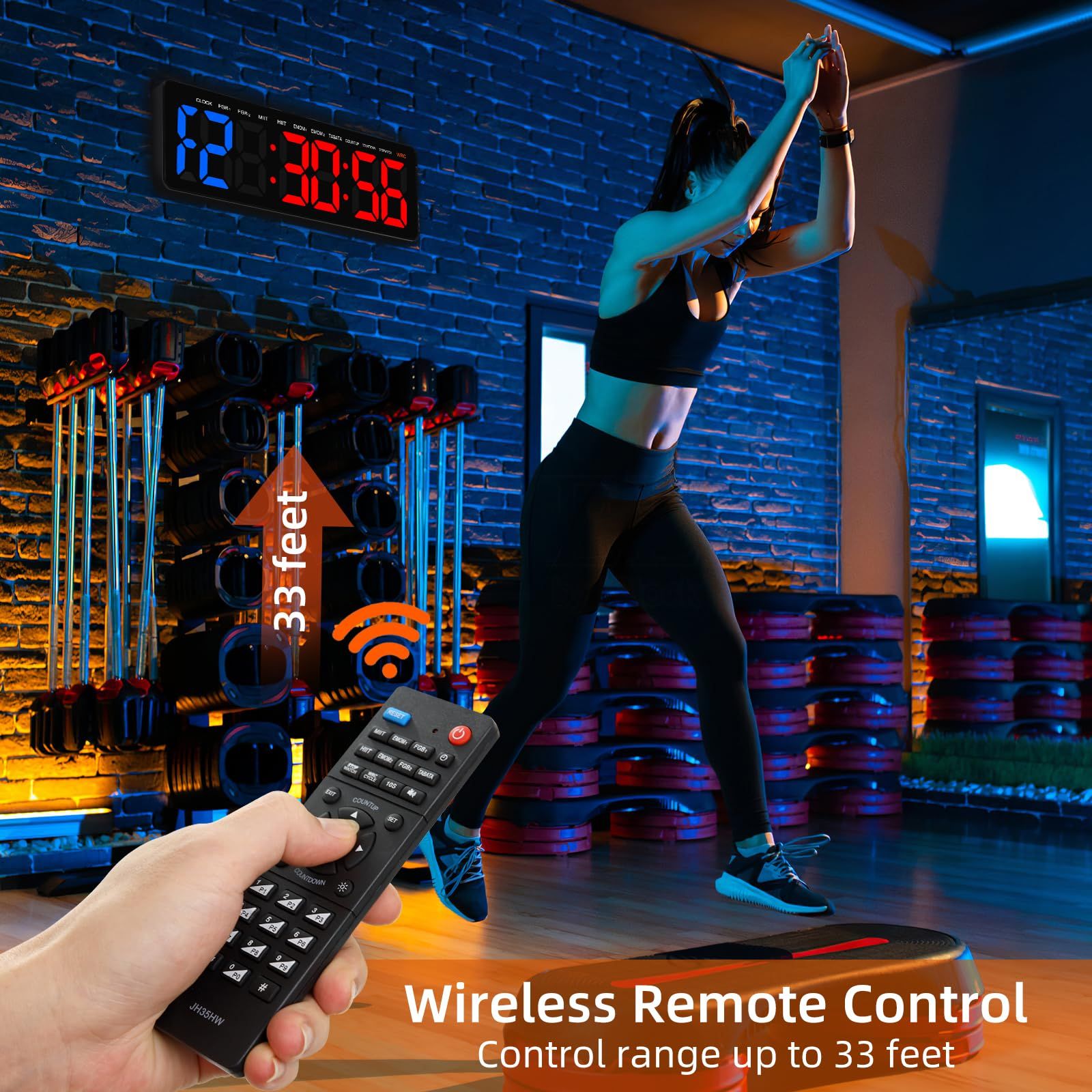 16 5インチ スポーツタイマー 大型 インターバルタイマー リモコン付き 3 4インチ大字 ストップウォッチ 壁掛け式 トレーニング デジタイマ チャレンジ 勉強 自宅 mケーブル TABATA EMOM MIIT HIIT 青と赤