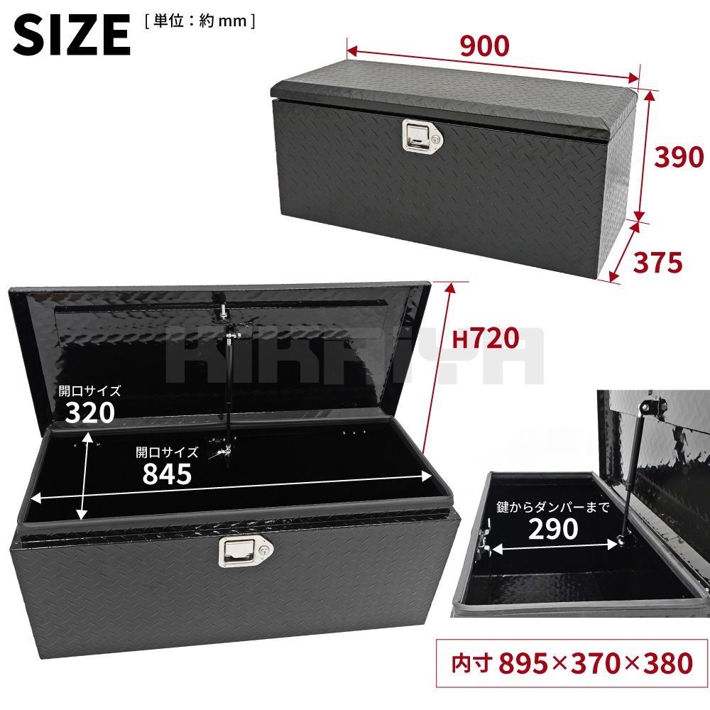 アルミトラックボックス 900 375 390 mm 収納ボックス ブラック 艶あり アルミ工具箱 トラックボックス アルミツールボックス KIKAIYA 一部地域配送不可