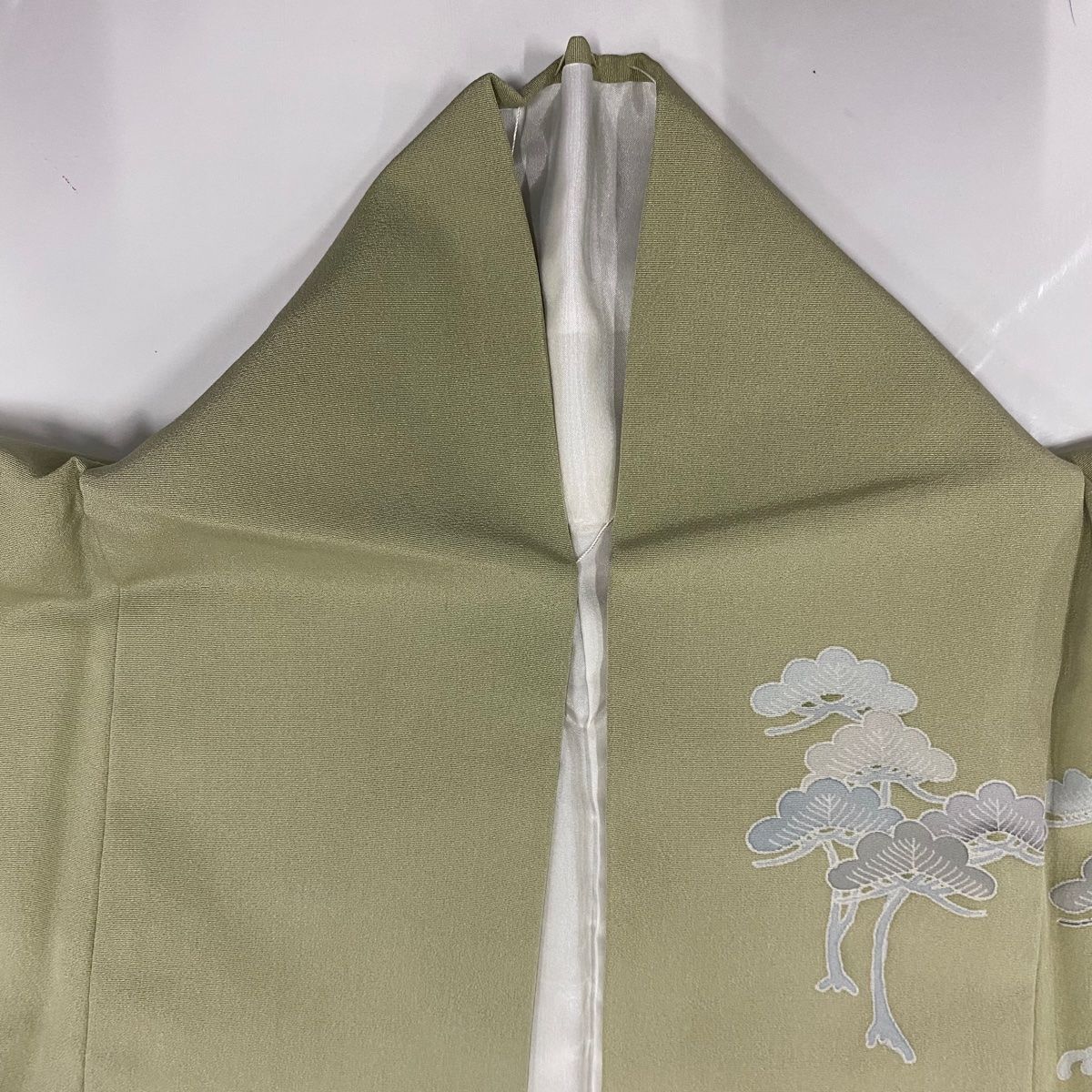 訪問着 身丈160.5 cm 裄丈65 M 袷 松 波頭 金糸 金彩 灰緑 正絹 秀品