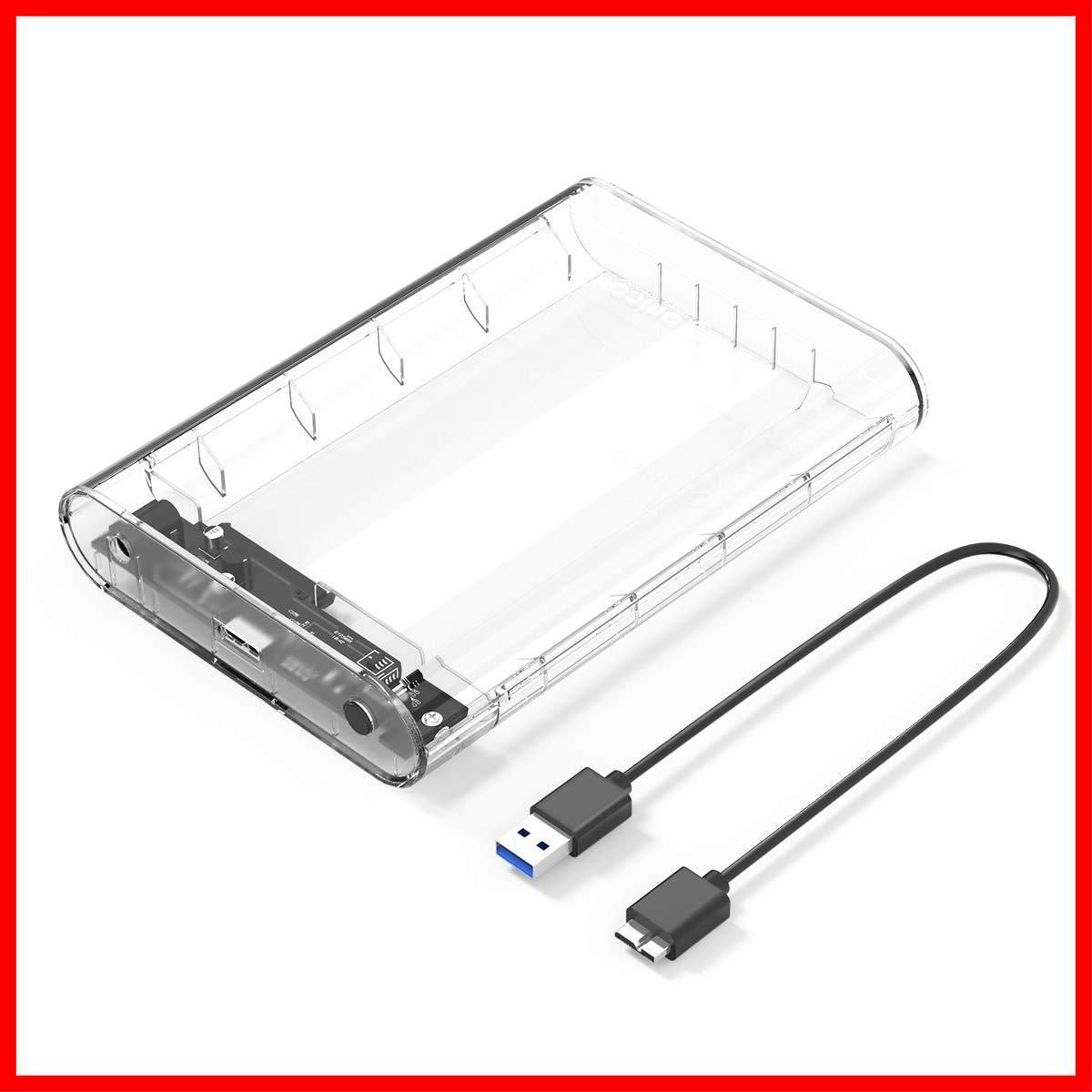 ORICO 3.5インチ HDD ケース USB3.0 ドライブケース SATA3.0接続 5Gbps転送 3.5 HDD対応 16TBまで 電源アダプター付 静電気防止 PC材料 工具不要 透明ケース