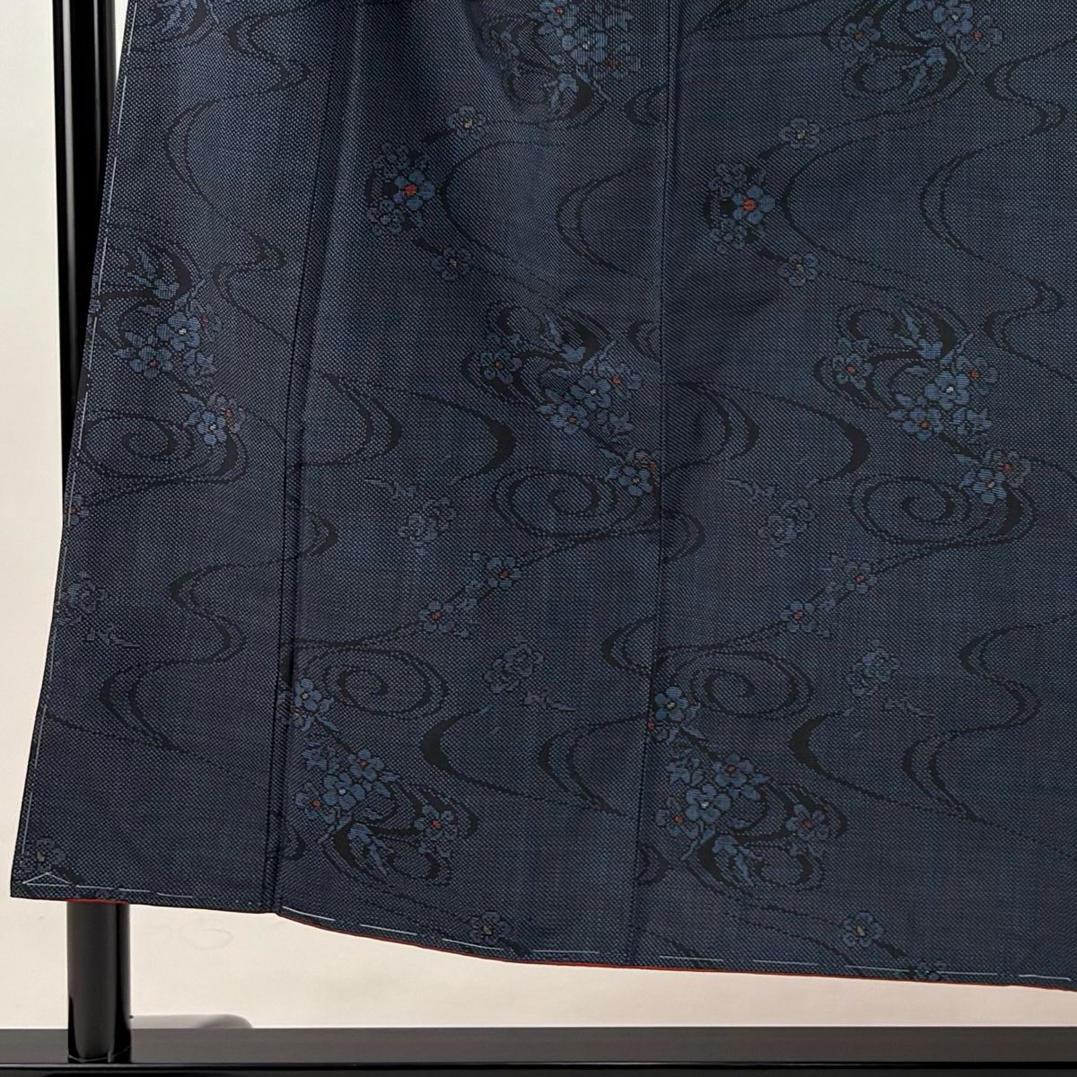 紬 身丈152 cm 裄丈63 S 袷 草花 流水 紺色 正絹 秀品