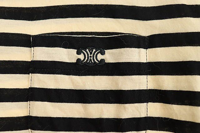 セリーヌ CELINE 24 AW Triomphe Regular T-Shirt In Striped Jersey トリオンフ ロゴ刺繍 ストライプ ジャージー レギュラー半袖Tシャツ 38 NB L ブラック ベージュ 251029