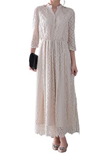 [アウニイ] パーティ ワンピース ドレス レディース 結婚式およばれワンピース レース 刺繍 五分袖 パーティードレス ピアノの発表会 披露宴 二次会 1.5次会 320108 (BE S)