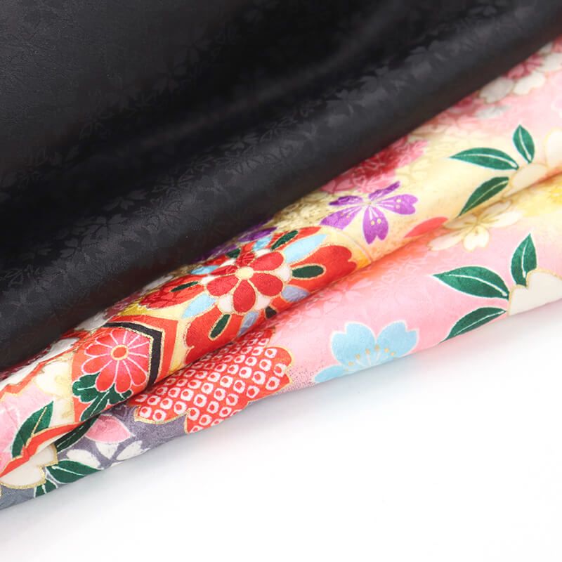 ポリエステルです。 スタッフの感想:黒地に桜の地模様が入った柔らかな生地風合い。