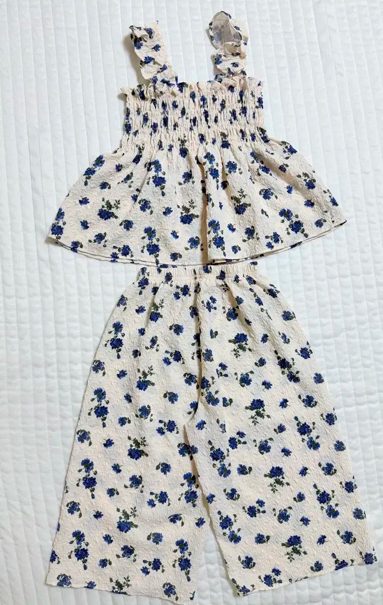 女児 フローラル クリンクル 上下セット セットアップ 青 XXL