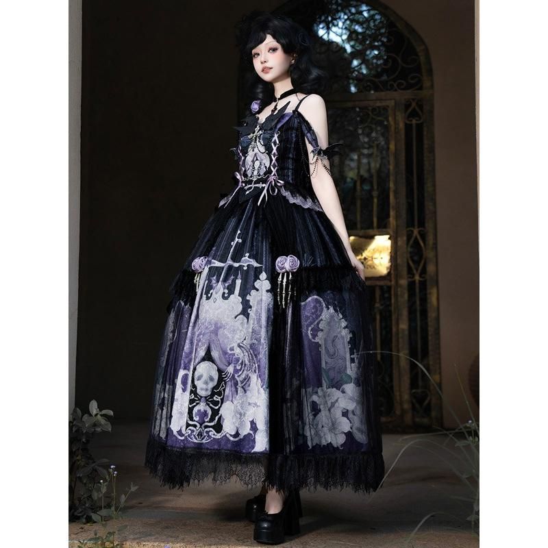 骸骨の幽霊ロリータセットアップ大人 日常コーデに上質な素材で着心地抜群オシャレなカフェデート春 夏 秋 通年 普段使い 日常