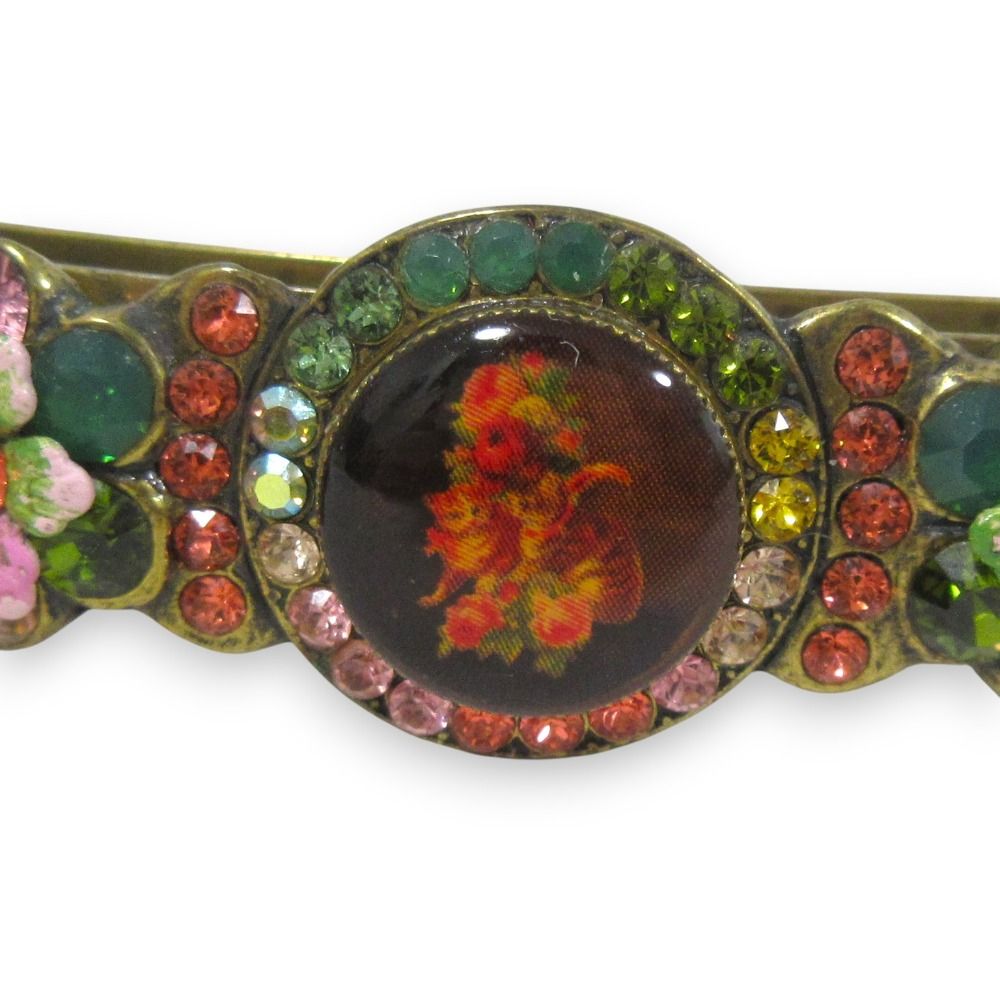 Michal Negrin ミハエルネグリン 猫 キャット フラワーモチーフ ビジュー バレッタ ヘアアクセサリー マルチカラー×ゴールド レディース 古着