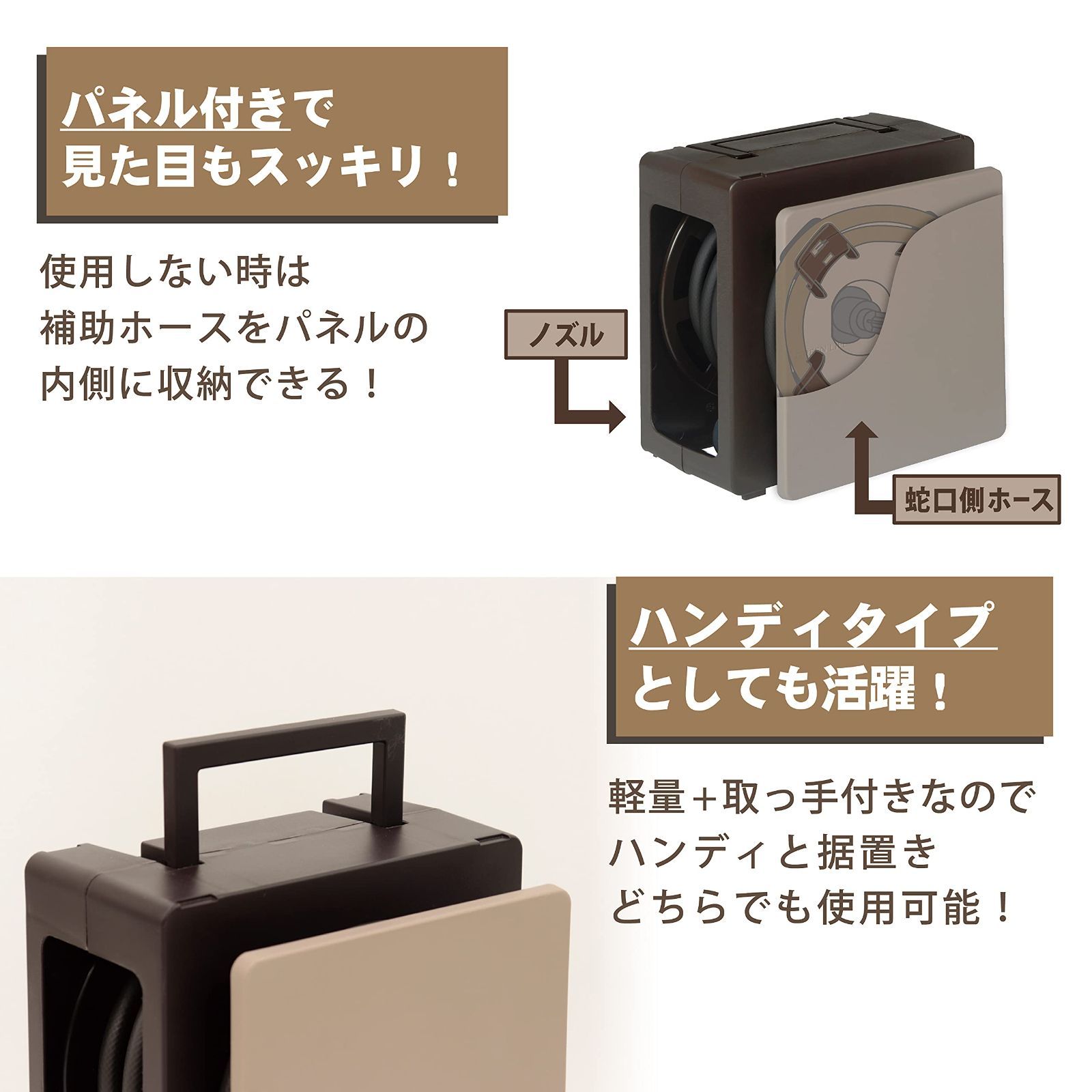 ブラウン・ベージュ色の外観を乱さないカラーリングで、9mmホースの中で業界最小のコンパクトホースリールです。