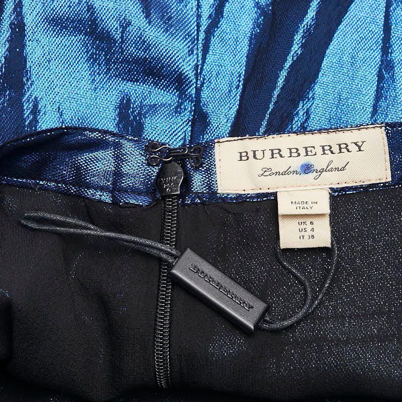 バーバリー スカート フ サイズ 38 メタリックブルー シルク 金属繊維 レディース 1-0231133