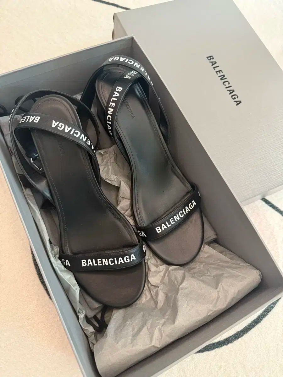 バレンシアガ ロゴ ストラップ サンダル ブラック カラーです。ボックスまである商品で、収納もよくしてあり、傷なしです。ストラップにロゴがPOINTで入っており、きれいです。コメントなければ、すぐ安全決済していただければ大丈夫です!