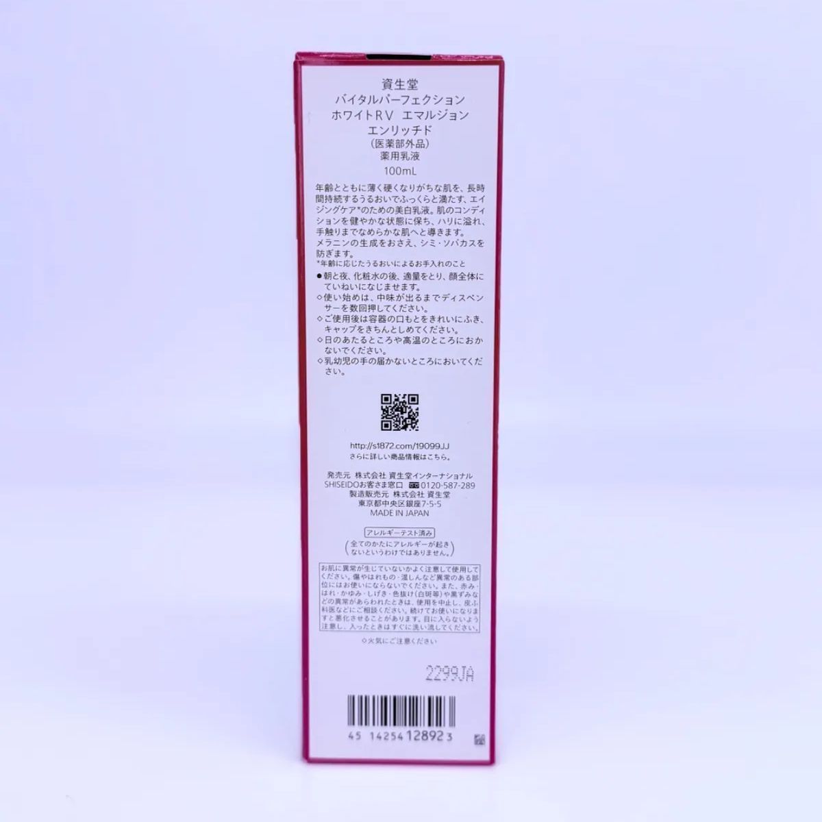 資生堂 バイタルパーフェクション ホワイトRV エマルジョン エンリッチド 100 ml