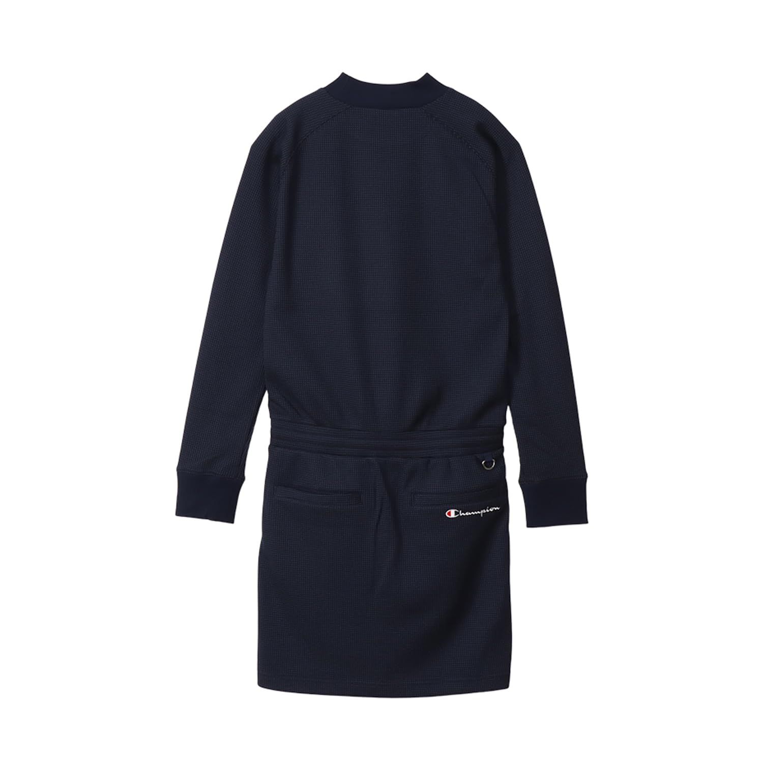 チャンピオン ワンピース 長袖 静電ケア 保温 グラフィックロゴプリント ワンピースドレス ゴルフ CW-YG 404 レディース ネイビー M