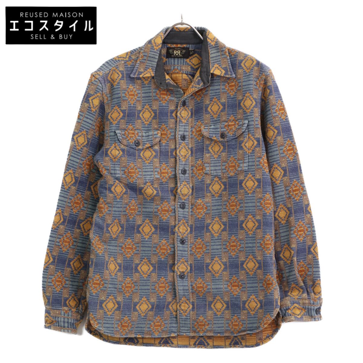 RRL ダブルアールエル インディゴ ネイティブ ジャガード 長袖シャツ M