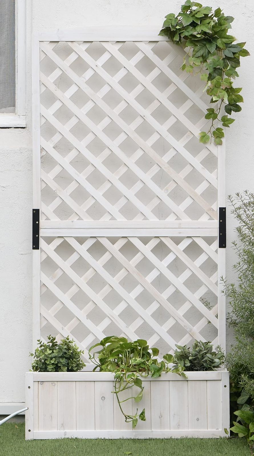 リビングアウト(Living Out) プランターラティス 木製 ホワイト 幅71.5×奥行30×高さ148cm プランター付きラティスフェンス 天然木使用 ガーデニング モダンにお庭を演出 壁面緑化 目隠し