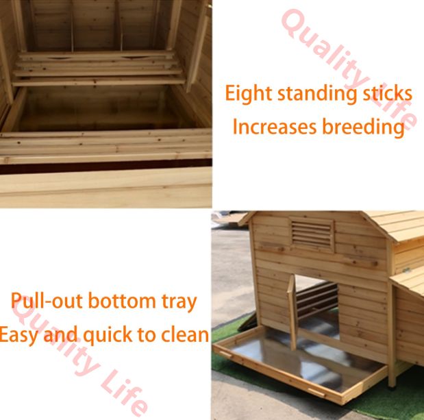 ? 鶏小屋には休憩箱とランプが付いています。鶏は卵を産むことができ、ランプにより鶏は簡単に入ることができます。ランプの上には木製の尾根があり、鶏が後ろに滑り落ちるのを防ぎます。