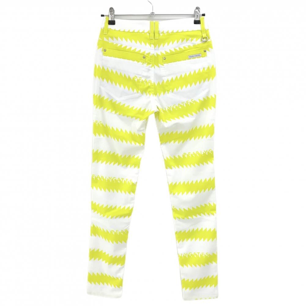 パーリーゲイツ パンツ 白×イエロー ギザギザボーダー ストレッチ レディース 0 S ゴルフウェア PEARLY GATES