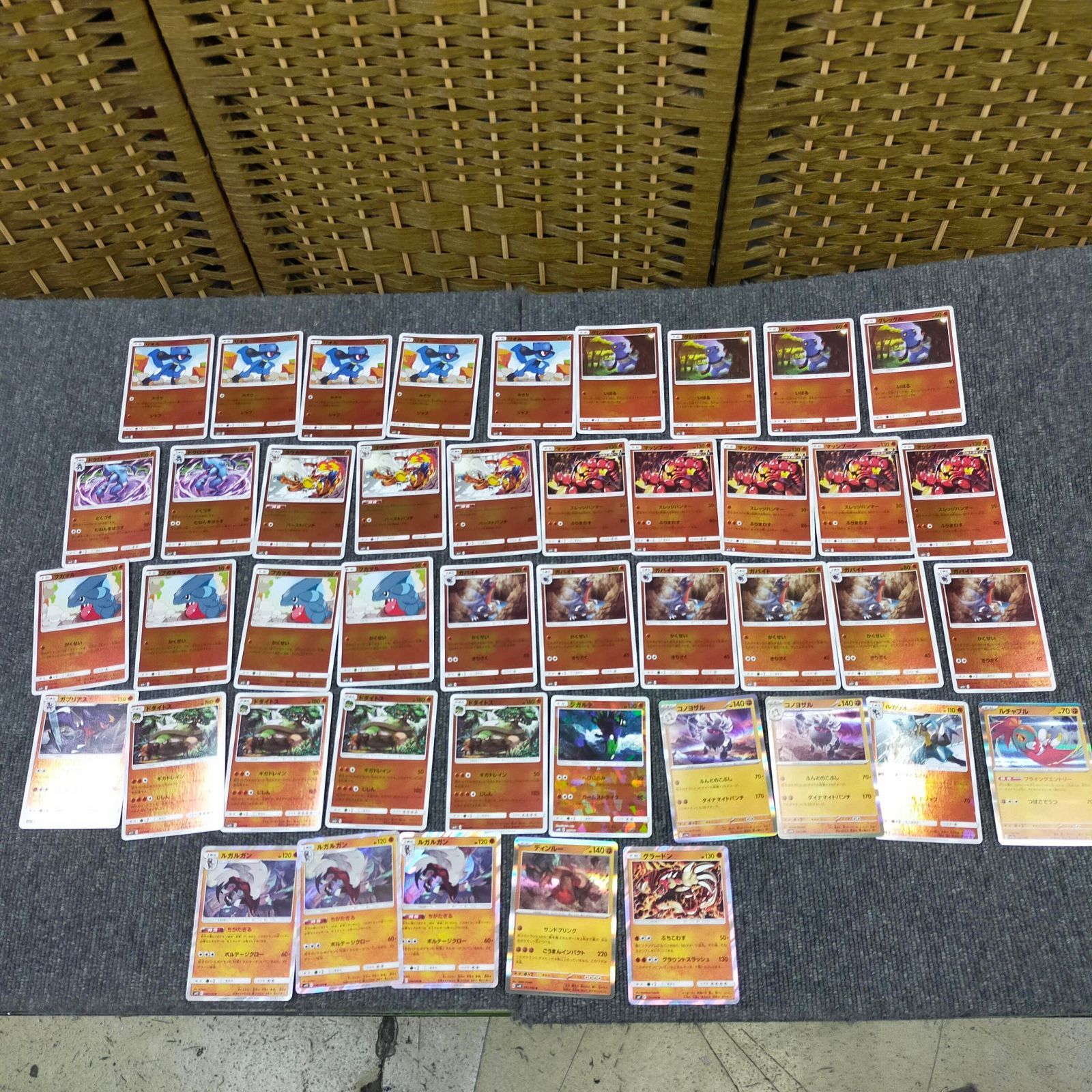 草タイプ27枚、炎タイプ17枚、水タイプ31枚、雷タイプ24枚、超タイプ41枚、闘タイプ44枚、悪タイプ6枚、鋼タイプ16枚、ドラゴンタイプ9枚、無色タイプ3枚、フェアリータイプ11枚、エナジー24枚、サポート9枚、グッズ8枚