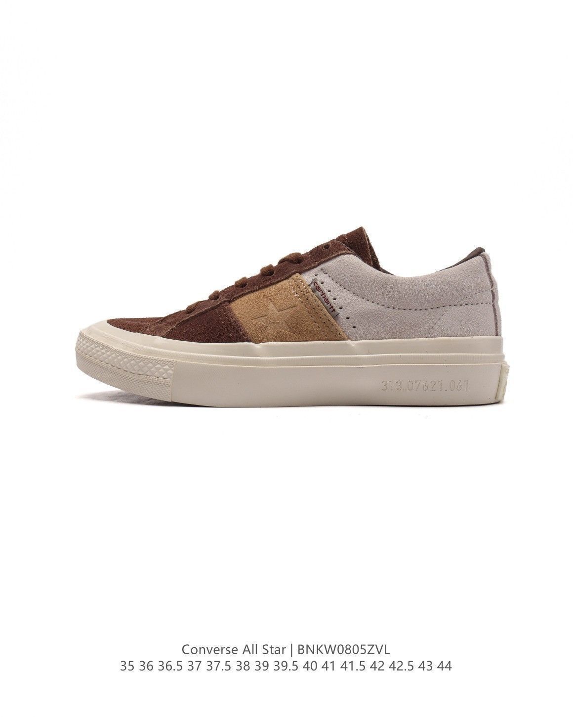 三片式のパネルで構成されるパネル仕様の上部は、Carhartt WIP の象徴的な茶色を基調とした作業服カラーが施されています。そして、作業服のズボンにインスピレーションを得た三重の縫い目が施されており、シンプルな工芸美学をクラシックなシューズに刻み込んでいます。