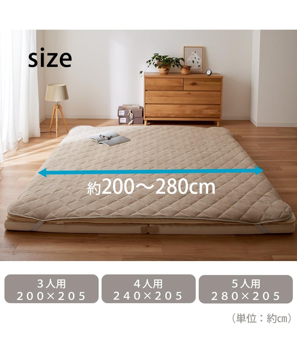 ファミリーサイズ展開で、家族みんなで使えるサイズが見つかります。ベッドの隙間をなくしたい方にもおすすめです。