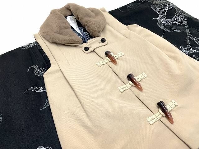 七五三 着物 セット 3歳 男の子用 モダン柄の着物とダッフル被布の2点セット 合繊 黒地 洋花 -13-2