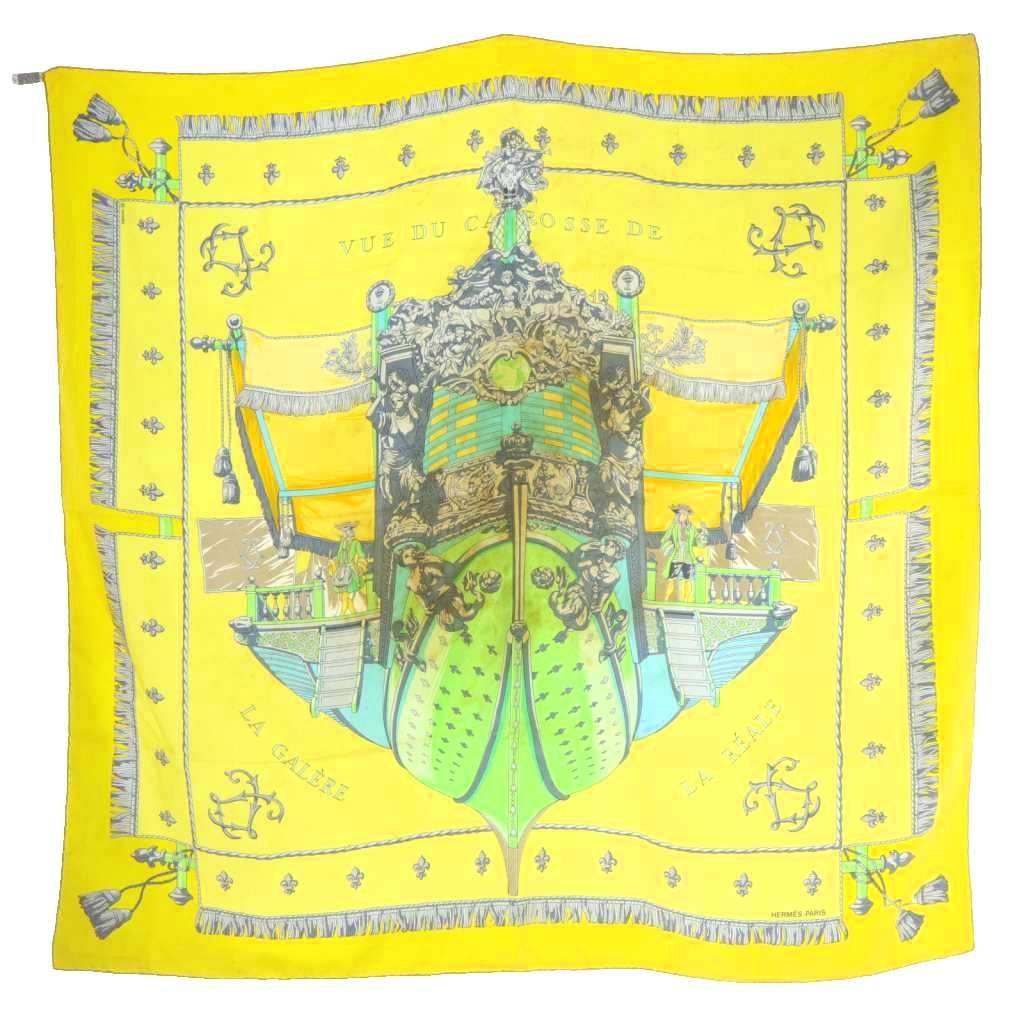 エルメス HERMES VUE DU CAROSSE DE クイーンの戴冠式 スカーフ 黄色 イエロー カレ90