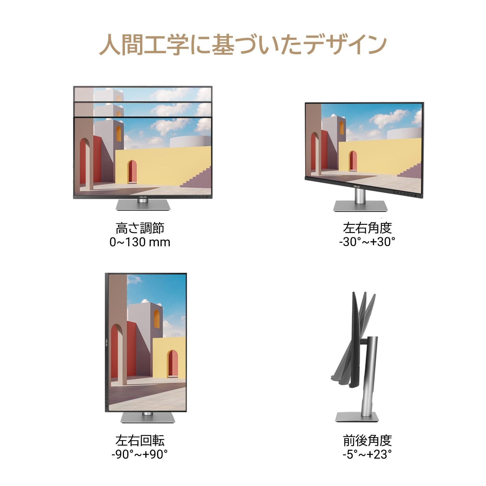 ProArt -J 27インチ|IPS|4年間無輝点|99% モニター DCI-P 3|99% Adobe 4 K RGB|USB-C PD 96 W|色精度ΔE<2|VESA ASUS DisplayHDR 400|エルゴノミクススタン