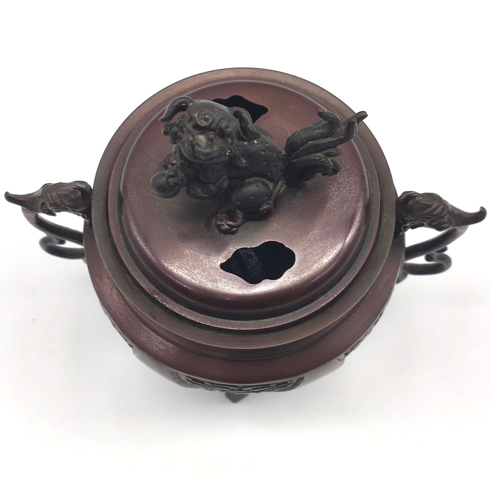 香炉 銅器 大和型 獅子蓋 象耳 No.250917-50 梱包サイズ60