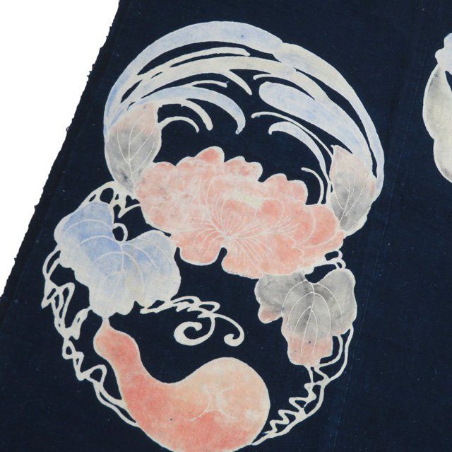 藍染 筒描き 筒描 筒書き つつがき 鶴 亀 蝶 草花 古裂 時代布 襤褸 古布 アンティーク リメイク きもの北條 A 1051-6