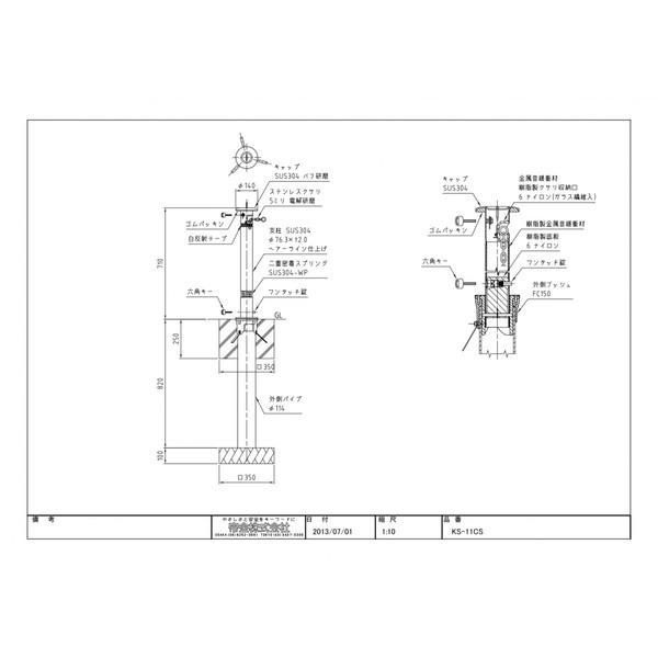 帝金バリカー KS 11 CS ステンレス製上下式バリカー 76 3 mm クサリ内蔵型 2重スプリング付 上下式車止め