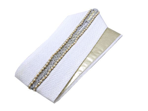 ラメ入り変り織りの白に輝くパールと銀のラメレース、裏面はゴールドの重ね襟!