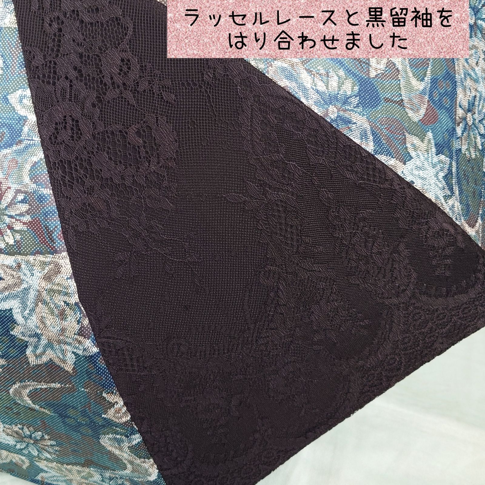 繊細な紅葉と花柄と深みのある黒・青のグラデーションが、洗練された魅力を放ちます。