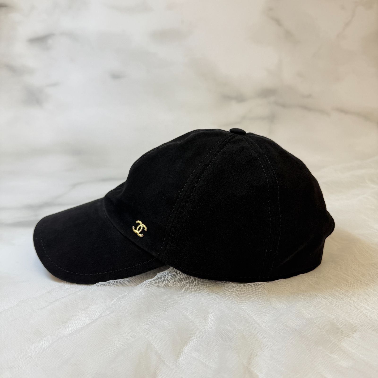 鑑定済み シャネル CC スエードキャップ ブラック ゴールド金具 スエード キャップ
