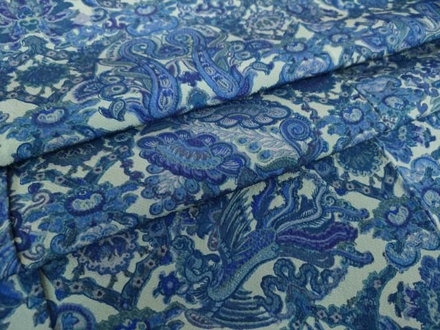 平和屋着物 上質な小紋 白檀染 鳳凰更紗花文 反端付き 正絹 ps