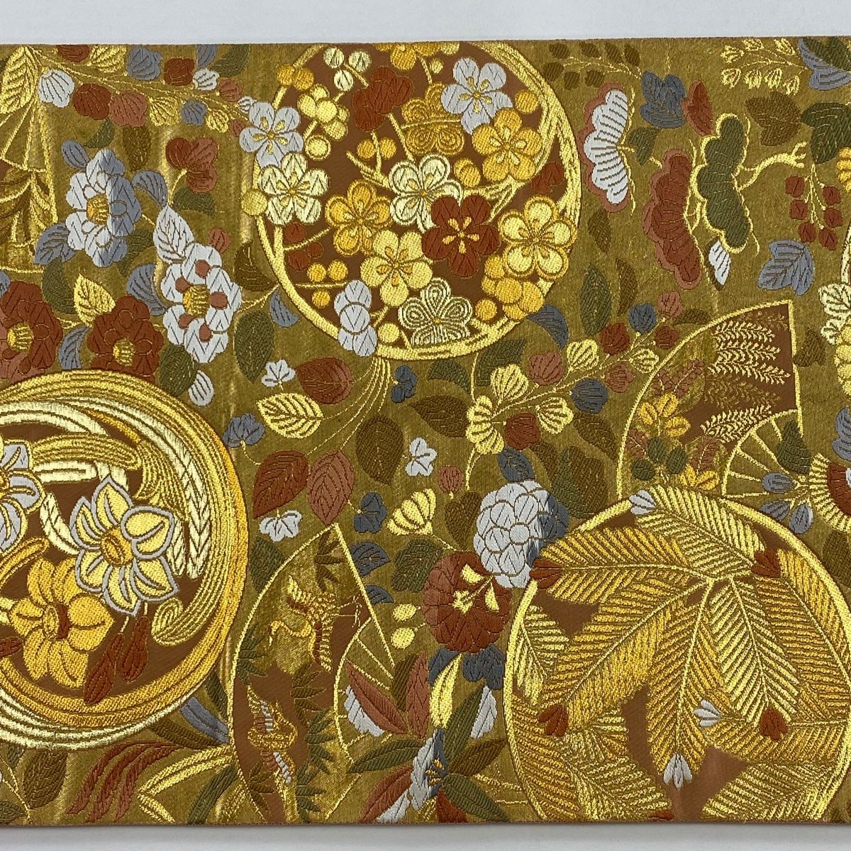 袋帯 秀品 花丸紋 松梅 唐織 箔 金色 六通 正絹
