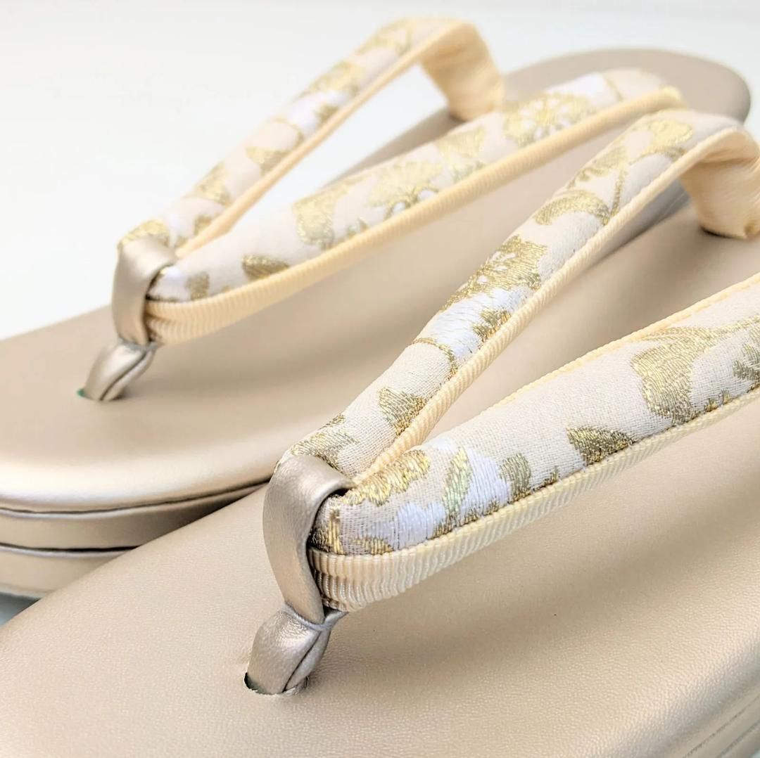 草履のサイズは、着物の裾を踏んだり巻き込んだりしないよう、かかとが台から少しはみ出すのが理想的なサイズとされています。