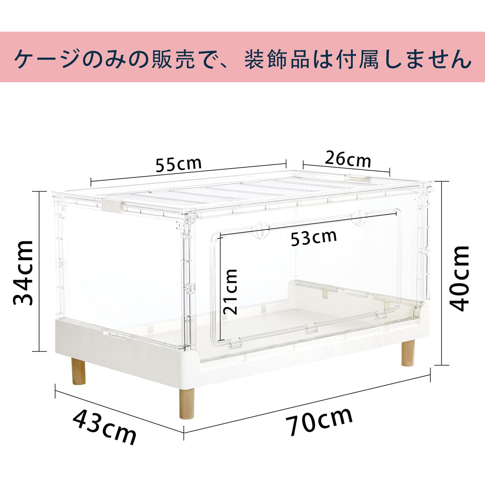 【広々とした内部】70.5x43.5x39cmのサイズで、ペットが快適に過ごせるスペースを確保しています。おもちゃや寝床を自由に配置でき、ペットの活動を豊かにします。