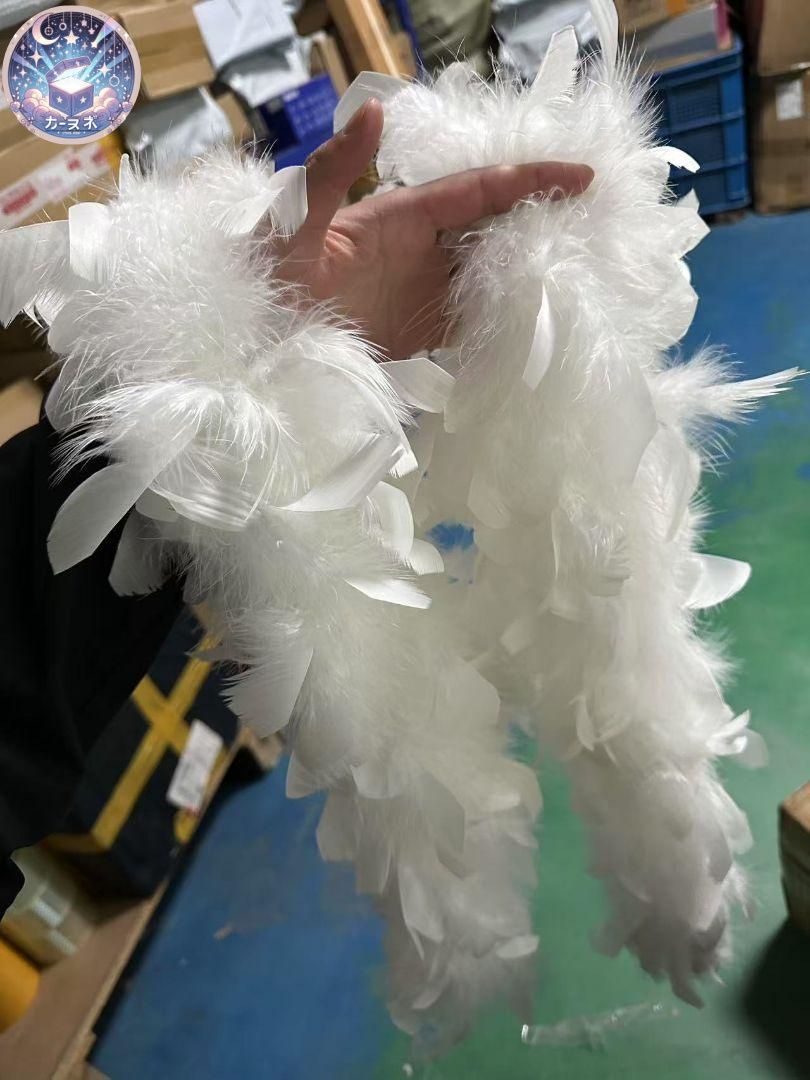 ●梱包の都合上、届いたショールが変形する場合、ドライヤーでしばらく風を当てると、羽毛が元のフワフワの状態に戻ります。
