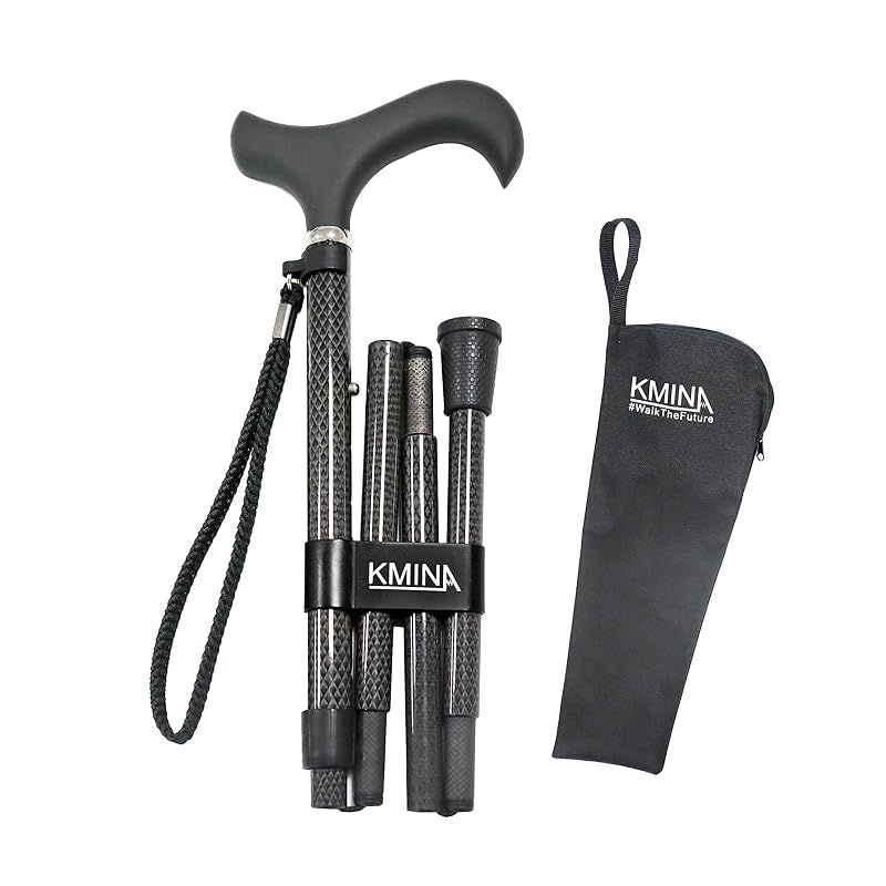 商品名:KMINA PRO - 折りたたみ杖 カーボンファイバー、男性用ステッキ、杖 女性用、男性用ステッキ、ウォーキングスティック 高齢者、折りたたみ杖、高さ調節可能
