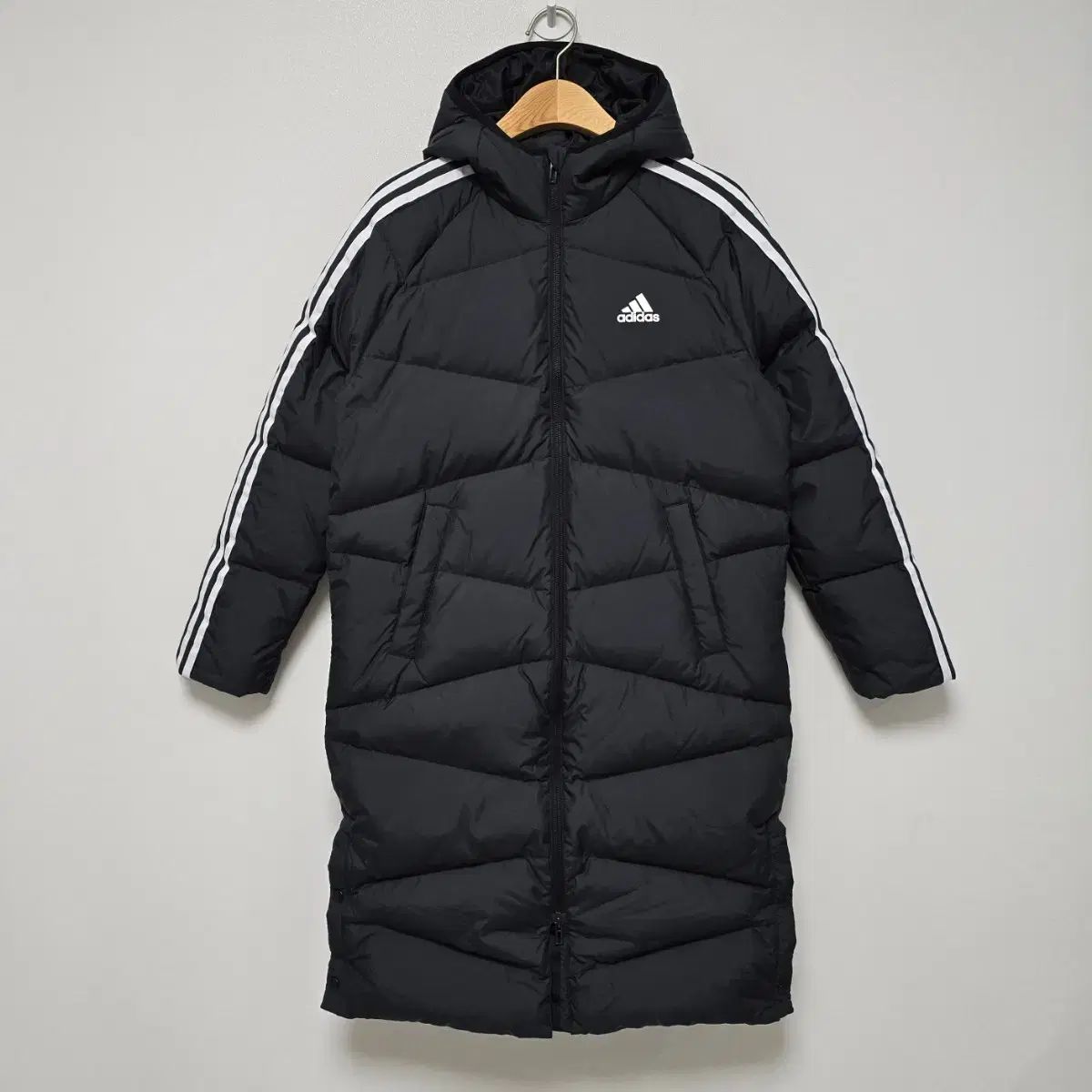 アディダス キッズ ブラック ダウンジャケット ロング丈 です。サイズは 150 です。腕の部分にアディダス 3本線 ポイントがあります。家で一回着てみて着ていません。タグ はありません。コメント 無ければすぐ 安全決済してください!