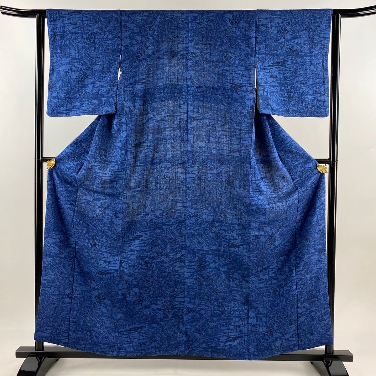 小紋 身丈160 cm 裄丈63 S 袷 紬地 家屋 橋 藍色 正絹 秀品