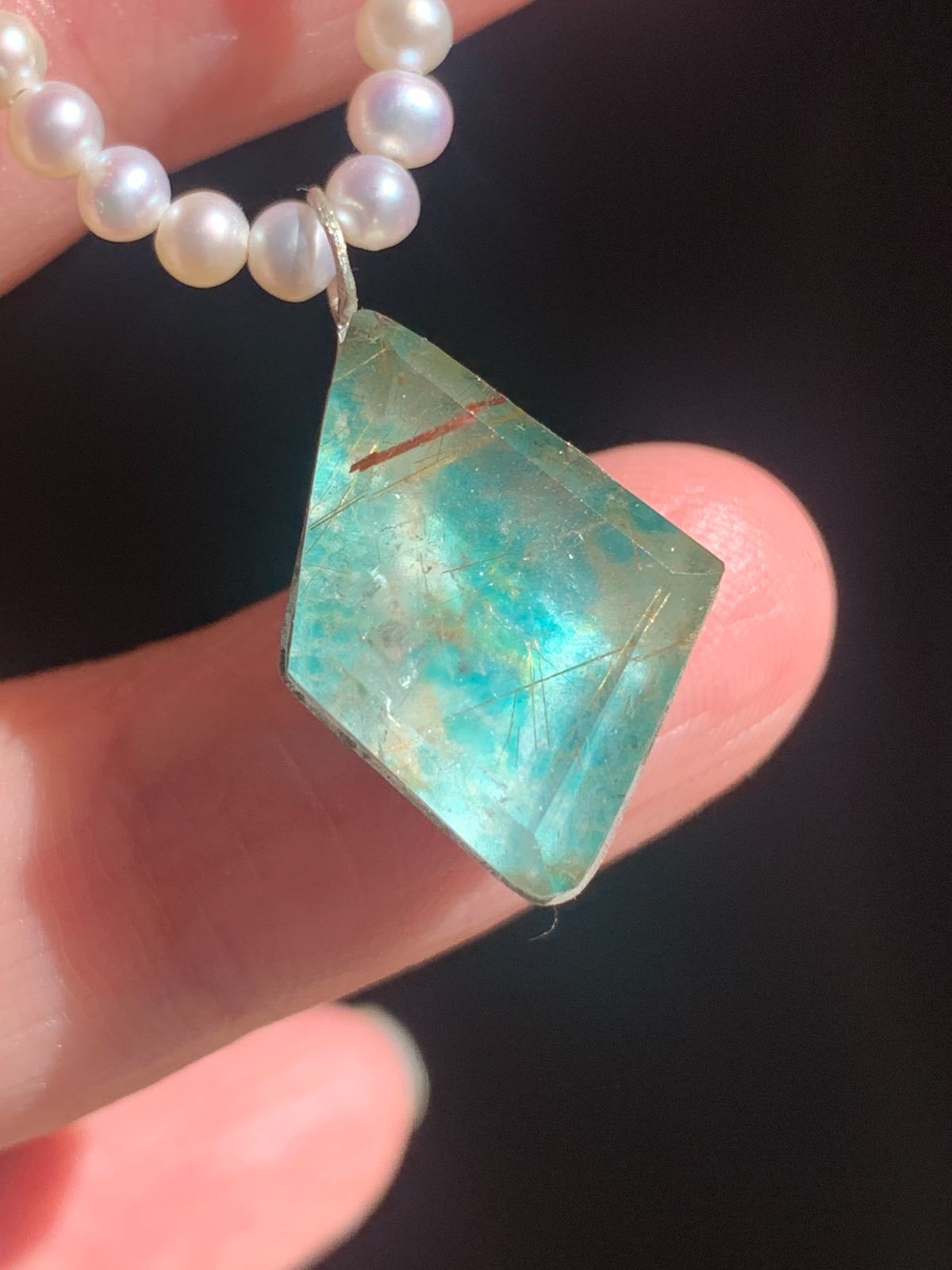 ターコイズ×ルチルクォーツ×クリスタルクォーツ ダブレット ストーン ネックレス 両面ペンダント チャーム SV 925シルバー 1点もの 38