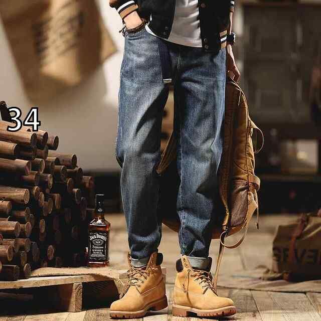 34 メンズ ファッション オシャレ 男性用 シンプル 大人 かっこいい カジュアル ストリート ヒップホップ HipHop アメカジ ジーンズ ルーズ ストレート 綿 パンツ