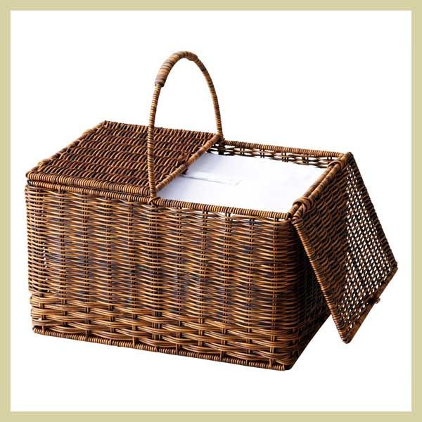 PP クローンラタンの蓋付きピクニックバスケット 保冷保温バッグ付き 37 26 23 cm かごバッグ ポリプロピレン 籐 リーズナブル シリーズ デザイン レトロモダン かわいい アウトドア 複数値引き 割引
