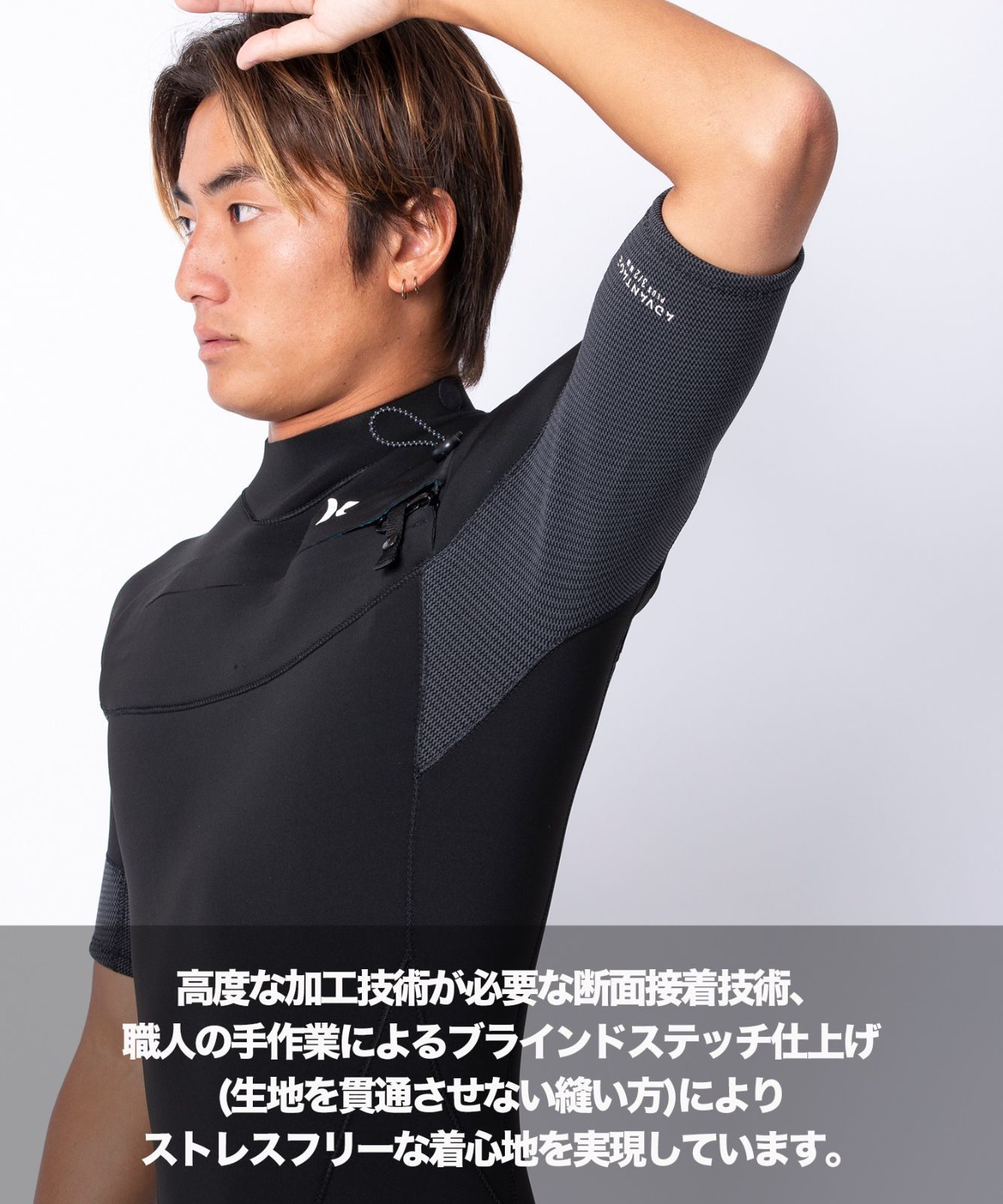 動体裁断理論に基づく理想的なパネルパターンでサーファーのパフォーマンスを妨げることなく、最大限に発揮できるようにサポートいたします。