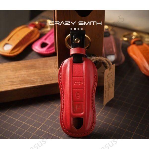 ポルシェ Porsche 新型パナメーラ 新型カイエン 手作り本革キーケース スマートキーカバー オレンジ FEU 2年保証 ファッション