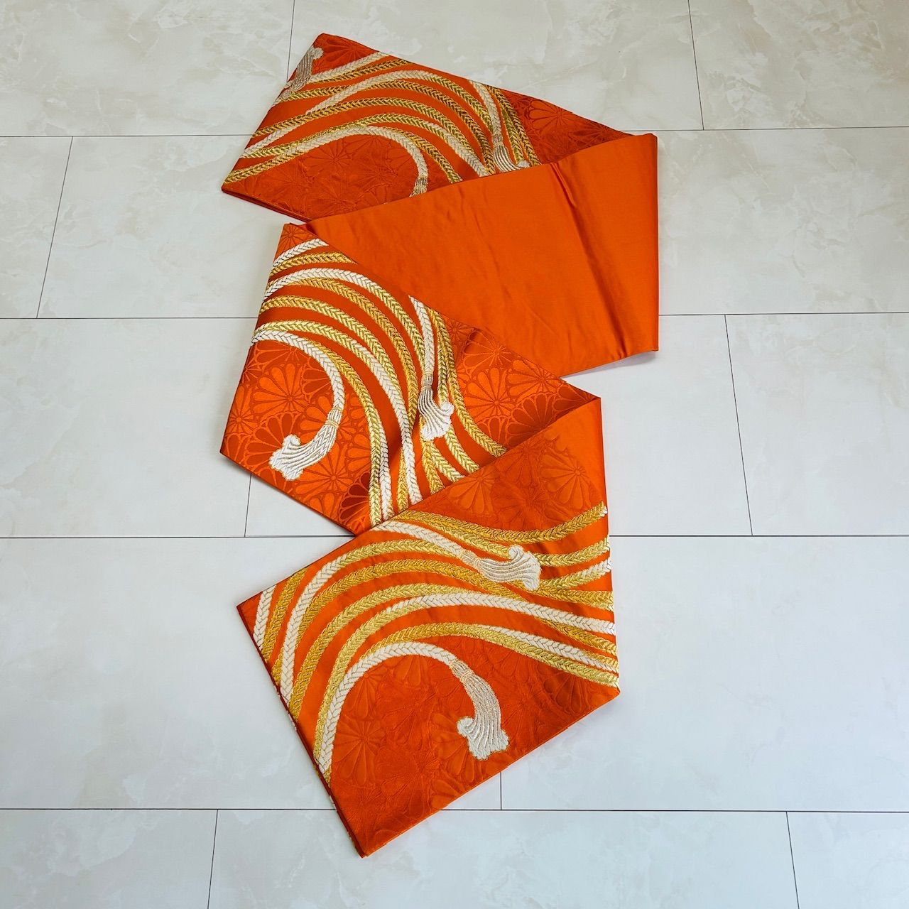 着物 一式 セット 振袖 袋帯 帯締め 紫 オレンジ 花 華やか 管理番号KKVMI 78