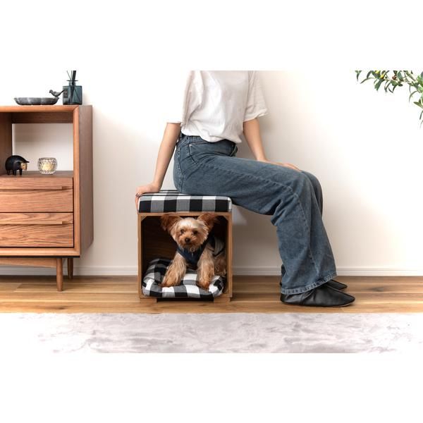 ペットスツール 椅子 腰掛け スツール 犬 イヌ 猫 ネコ 座布団 ストライプ ボーダー チェック 柄 デザイン ペットサークル ケージ ペット用品 インテリア azm-pet-169
